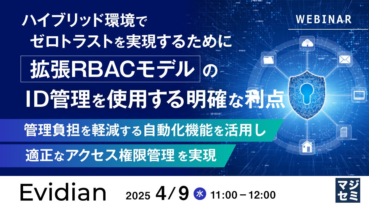 マジセミ株式会社は「ハイブリッド環境でゼロトラストを実現するために、拡張RBACモデルのID管理を使用する明確な利点」というテーマのウェビナーを開催します。