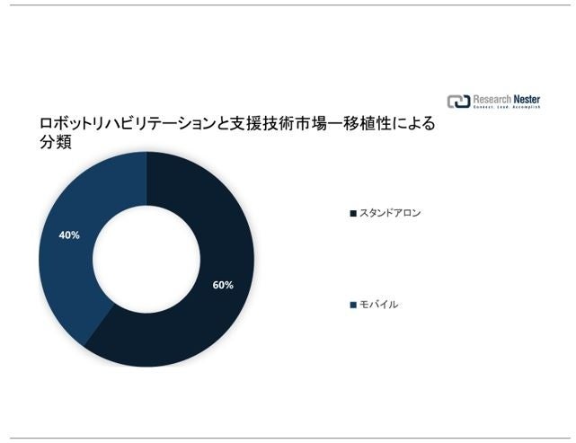 世界のロボットリハビリテーションと支援技術市場は、スタンドアロンおよびモバイルへの移植性によって、需要と供給について分割および分析されています。 2 種類のセグメントのうち、スタンドアロン セグメントは、予測される時間枠で最大の市場シェアを獲得すると推定されています。このセグメントの成長は、定位技術などの新技術の開発に続く、障害者の有病率の急増に起因する可能性があります。たとえば、世界には 10 億人を超える障害者がおり、これは 15 歳以上の約195百万人 (世界人口の 15%) に相当し、障害を経験しているか、頻繁に治療を必要としています。