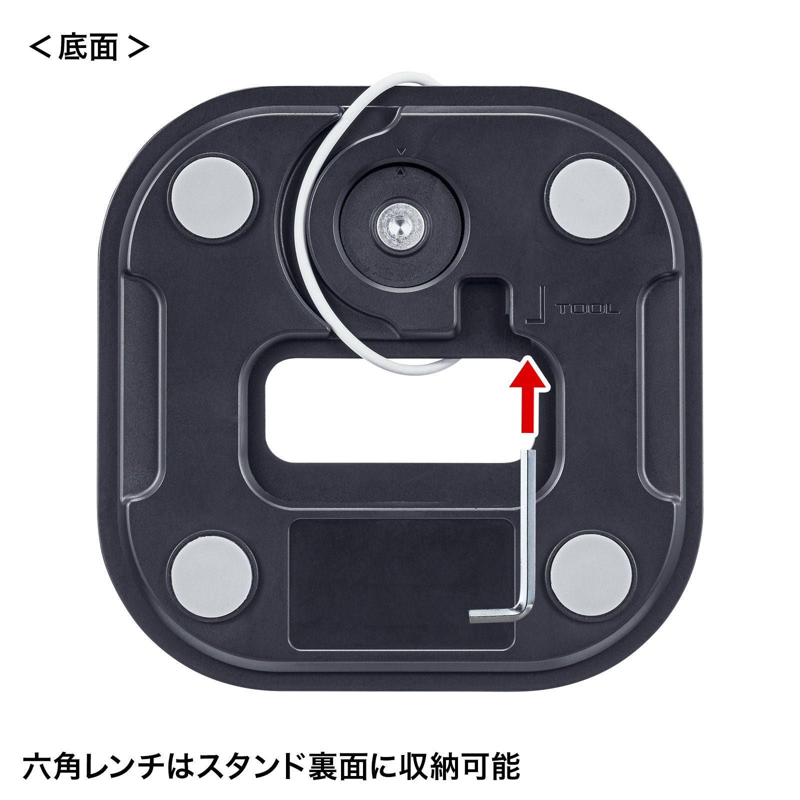 また、スタンド裏面には組み立てや調整に使う六角レンチを収納できます。