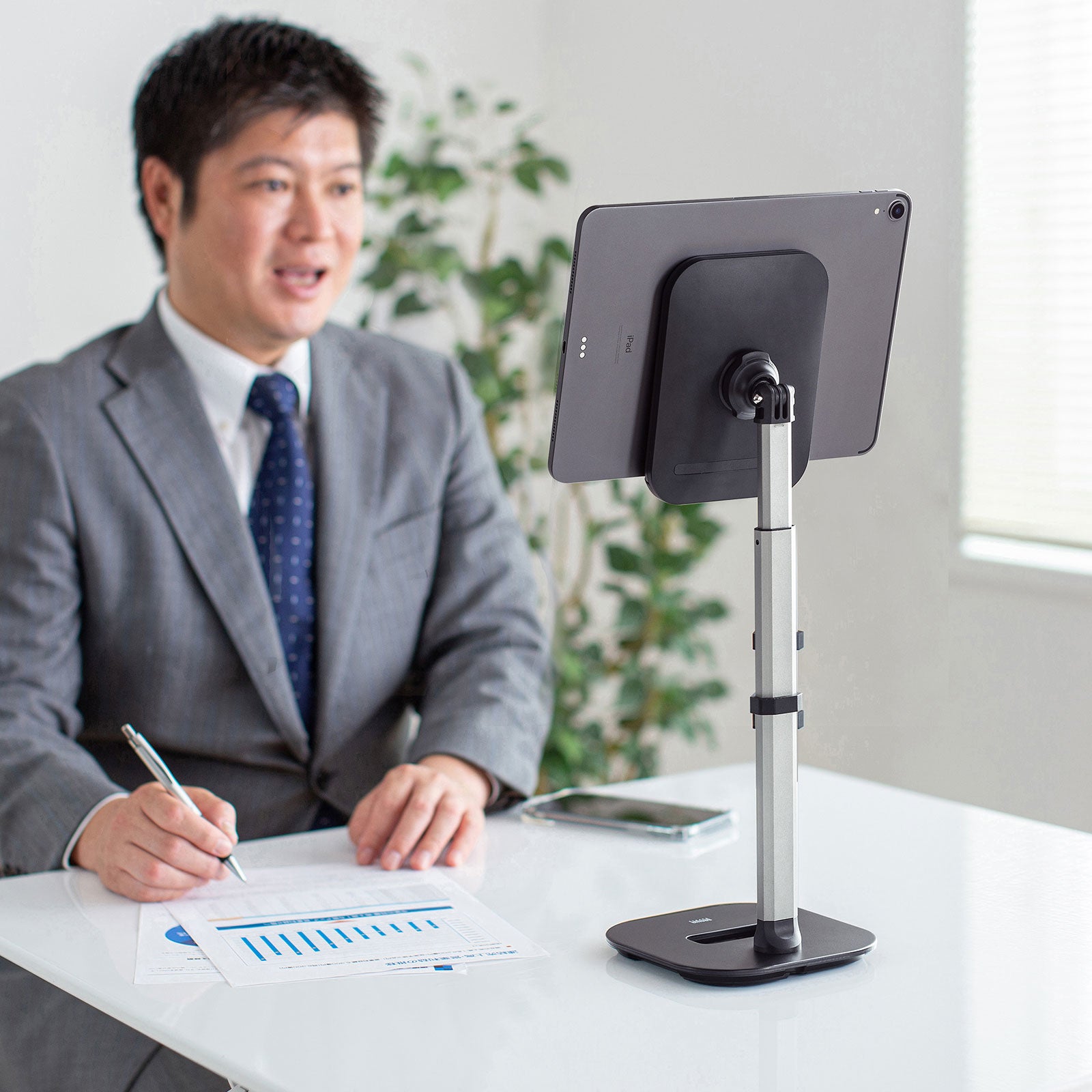 伸縮アームでタブレットの設置高さを調節できる、テレワーク、オンライン授業に最適なiPad・タブレットスタンドを発売