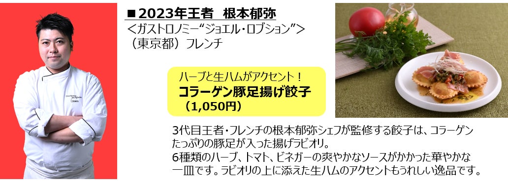 番組で審査員やゲストを唸らせてきた王者たちの腕前を感じられる、至極の餃子メニューの数々を食べられるまたとないチャンスです。