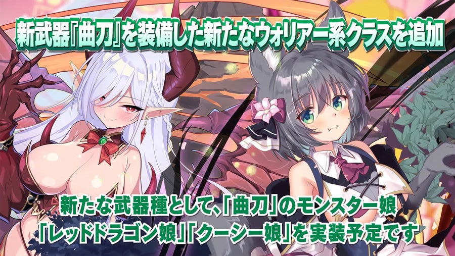 新形式イベントの開催や、新武器種「曲刀」のモンスター娘が登場するガチャ、すべてのプレイヤーが受け取れる豪華ログインボーナスの実施など、さまざまなキャンペーンをご用意しております!続報を楽しみにお待ちください!