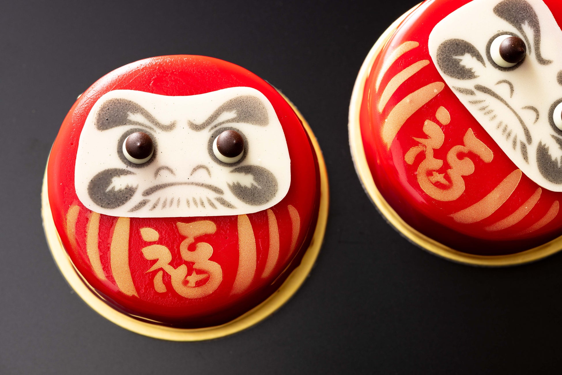 開運吉兆を象徴する“だるま”をモチーフにした新春スイーツ。なめらかで濃厚なレアチーズにオレンジマーマレードを重ね、キャラメル風味のグラサージュでコーティングしました。一つひとつ異なる愛らしい表情も魅力です。