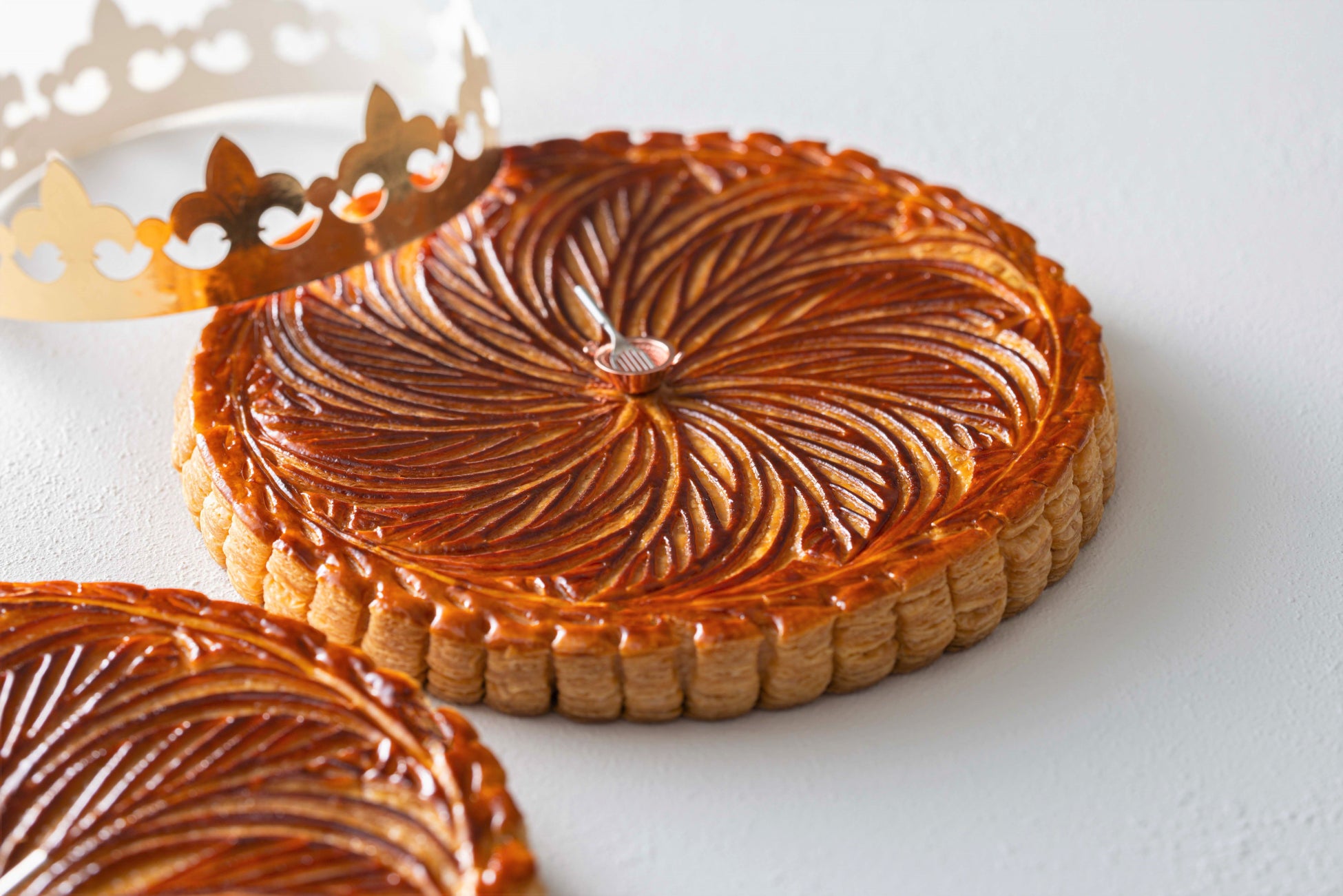 ガレット・デ・ロワは、フランス語で “王様のお菓子”を意味し、キリスト教の公現祭の日に食べる新年のお祝いに欠かせないフランスの伝統菓子。芳醇な香りの国産バターをたっぷり使用したサクサクのパイ生地に、ラム酒がほのかに香る上品な甘さのアーモンドクリームを入れ、軽やかに仕上げました。表面に施されている“レイエ”と呼ばれる太陽を模した美しい飾り切りは「生命力」の意味を持ち、子孫繫栄や五穀豊穣などの願いが込められています。シンプルだからこそ、パティシエの高い技術が光る逸品です。
