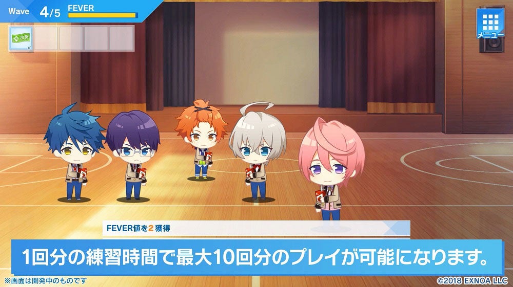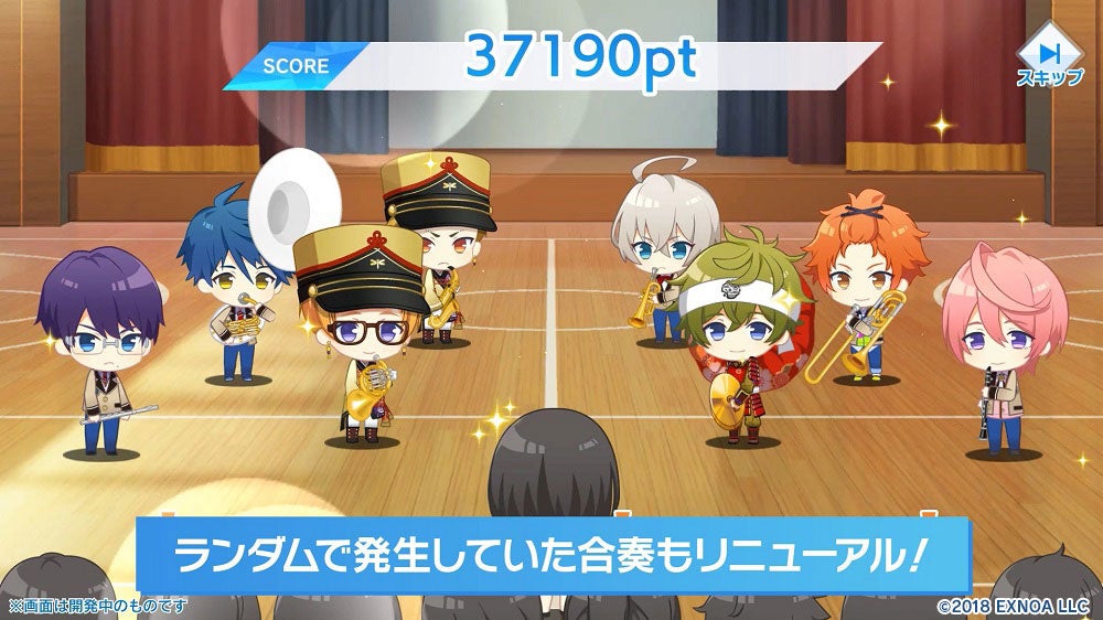 練習中に「合奏チケット」を獲得し、自分の好きなタイミングで「合奏」をプレイできるようになります。「合奏チケット」は属性ごとに分かれており、ランダムで獲得が可能!自分にあった合奏をプレイすることができ、練習と同じく、最大10回分まとめて挑戦することができます。