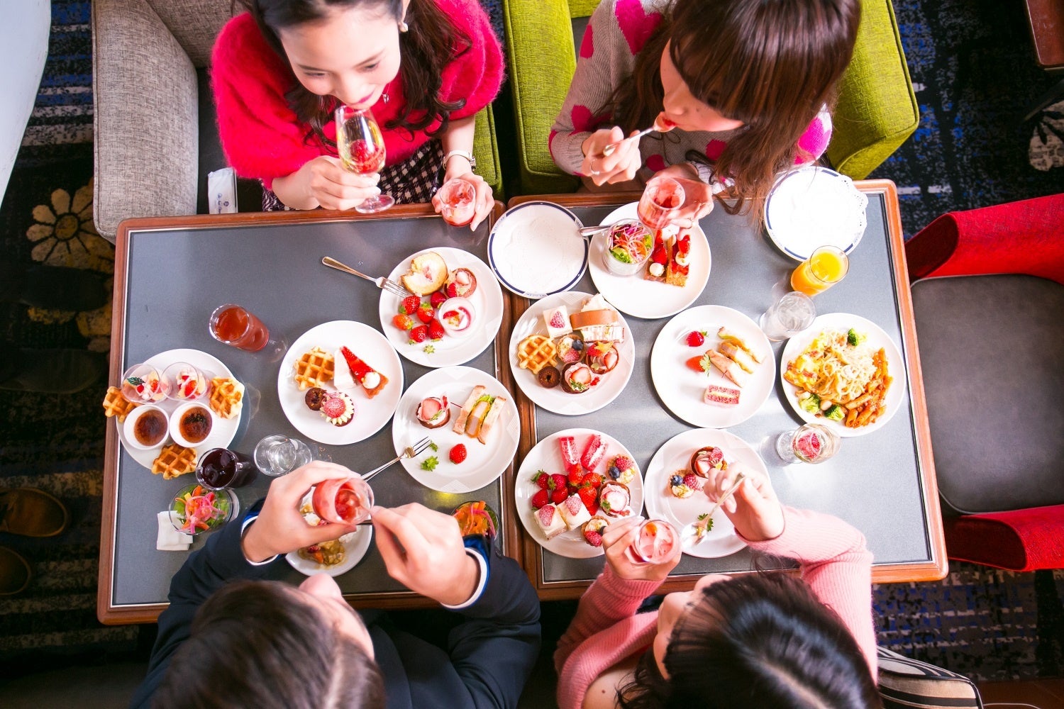 宝石のように艶めくいちごスイーツが並ぶ、春めくビュッフェ。