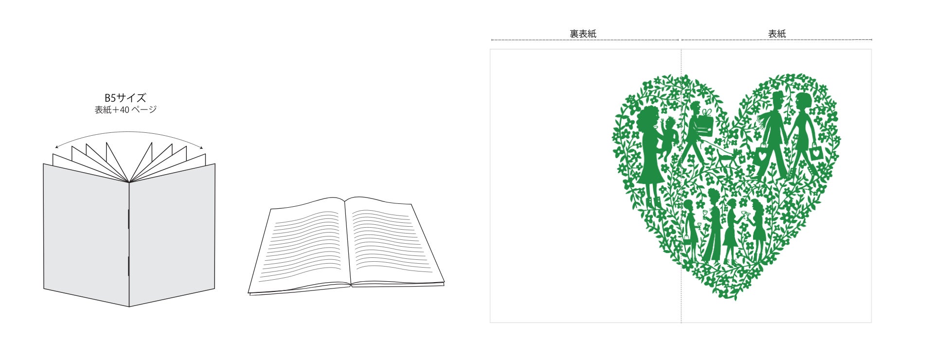 「Think GREEN」活動の一環で各店に設置する「エコフ衣料品回収BOX」でお客様から回収した衣料品※を粉砕し、パルプと混ぜて紙原料にリサイクル後、計4,000冊のオリジナルノートとして形にしました。表紙のデザインには、繊細な切り絵の手法を用いたアーティスト ロブ・ライアン氏によるビジュアルを印刷しています。