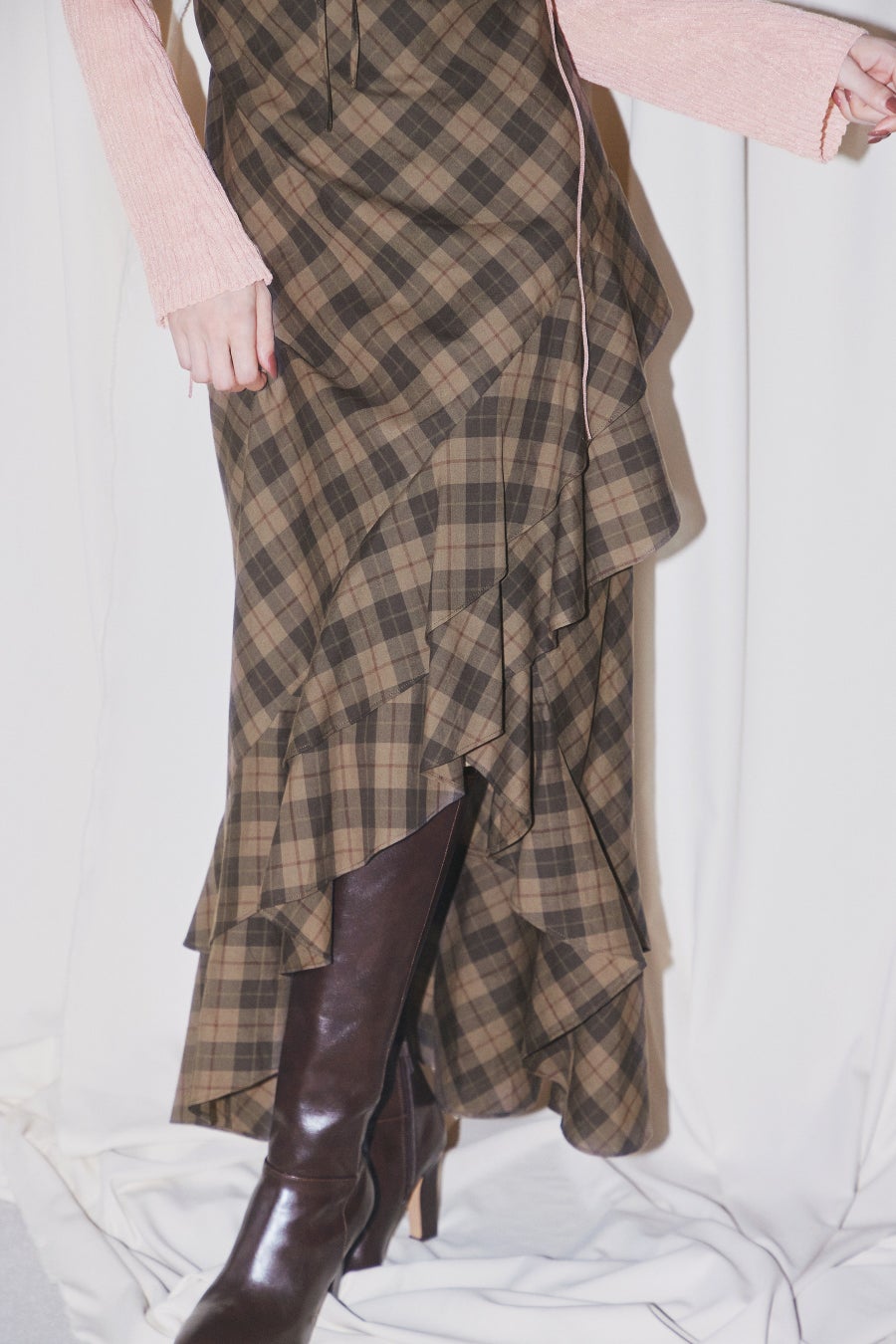 チェックパターンを柔らかく、軽やかなマテリアルで