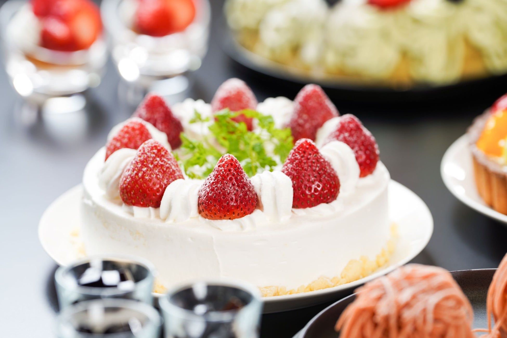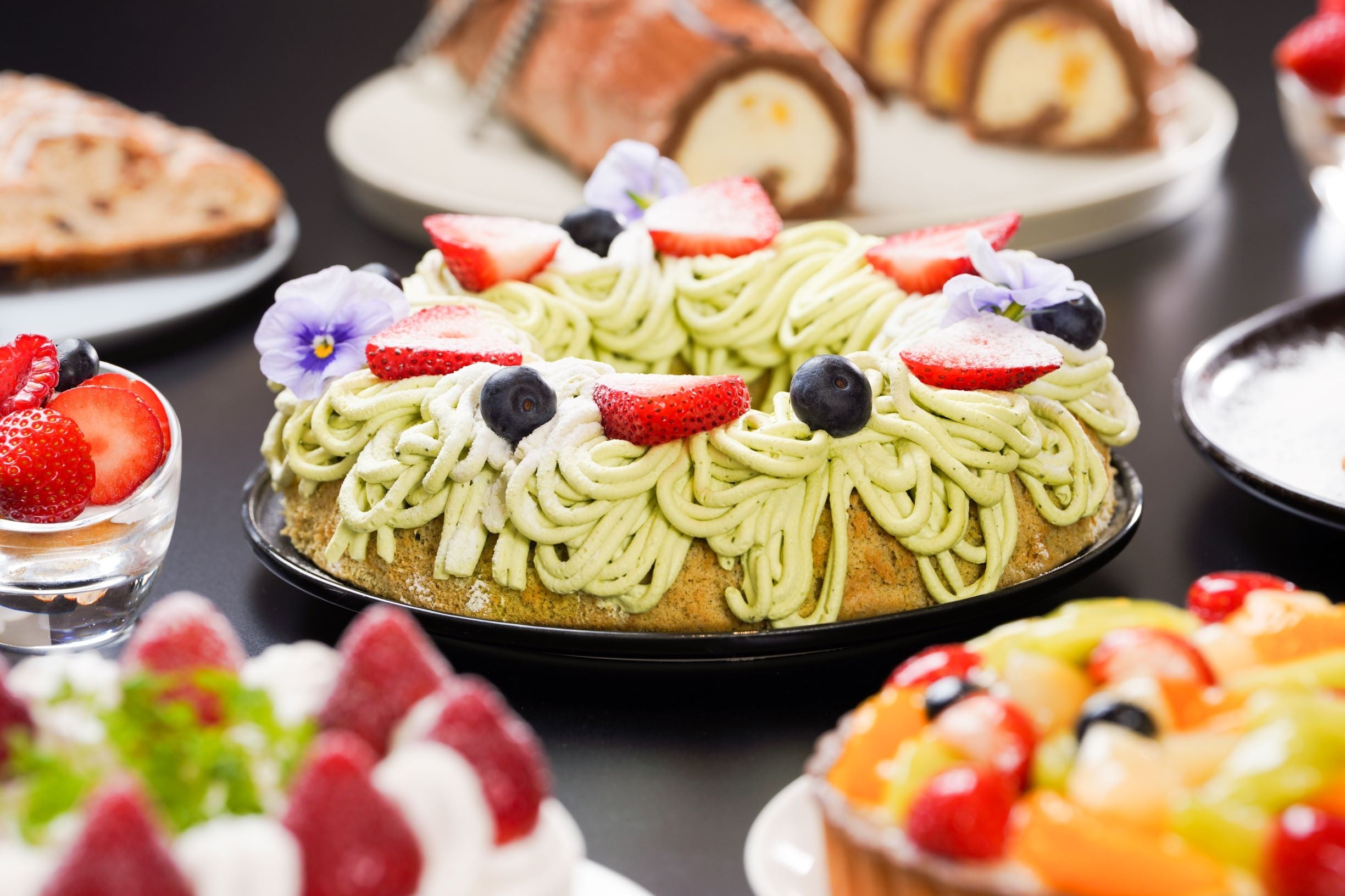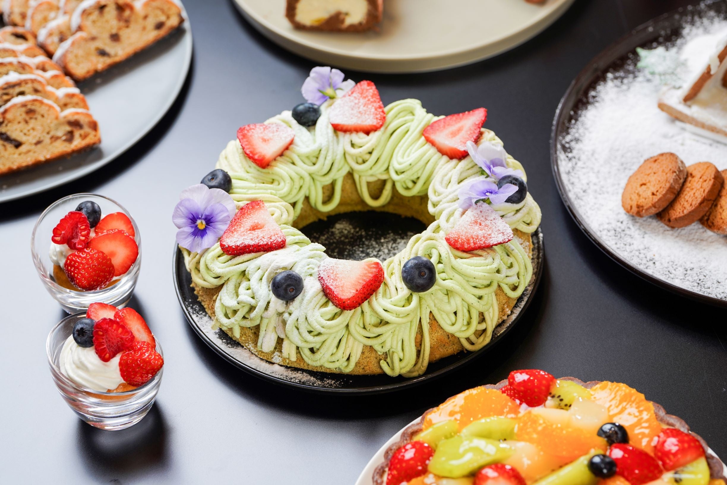 心躍る12月にピッタリの華やかなスイーツ17種類と、セイボリー9種類をお好きなだけお召し上がりいただけます。イチオシの「極細いちごモンブラン」はいちごと栗を合わせた極細ペーストを絞り、口の中でほどけるようなふんわり食感に仕上げました。「クレマ・カタラーナ」は、クリーミーでひんやりしたカスタードの甘さと、キャラメリゼのほろ苦さがよく合います。さらに、「ブッシュドノエル 栗とショコラのルーレ」「抹茶のシフォンケーキ リース仕立て」がクリスマス気分を盛り上げます。