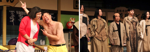お馴染みの音楽から始まった新喜劇は、間寛平が店主を演じるうどん屋が舞台。お馴染みの借金取りが登場する流れや、窮地を救うこれぞ吉本新喜劇の展開に観覧者は大爆笑。ファッションデザイナーを演じる島田珠代に訪れた、「ファッションショー会場のダブルブッキング」を救ったのが、うどん屋店主である間寛平であった。店主はうどん屋でのファッションショーを提案し、そこからはyoshiokuboのファッションショーがスタートします。