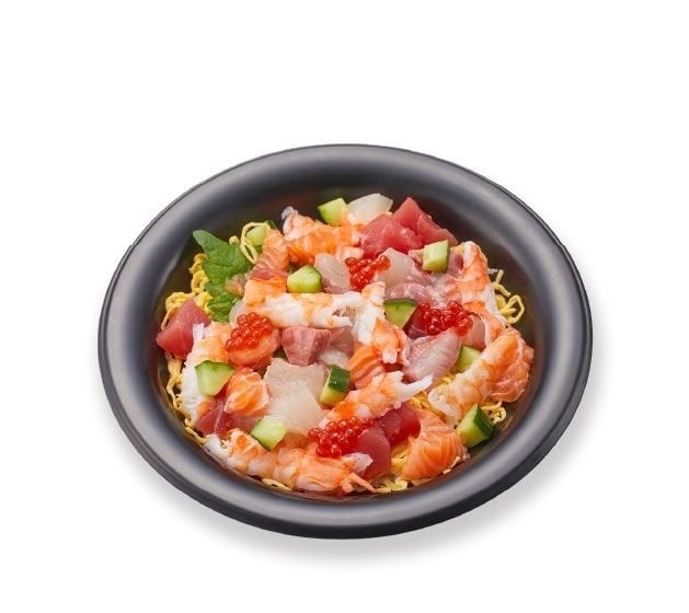 エビやサーモンなど、いろいろな魚を一度に楽しめる海鮮ちらし