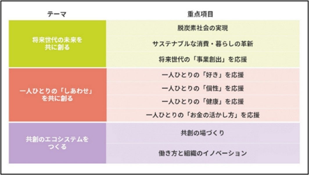 また、当社は、2030年のあるべき姿である「インパクト」を提示しました。そして、3つのインパクト⽬標の1つに「一人ひとりの『しあわせ』を共に創る」を掲げ、重点項目の一つとして「一人ひとりの『お金の活かし方』を応援」を設定しております。