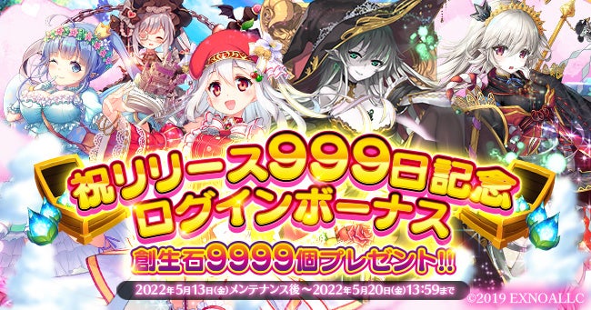 5月13日からリリース999日を記念して、豪華なログインボーナスを開催予定!