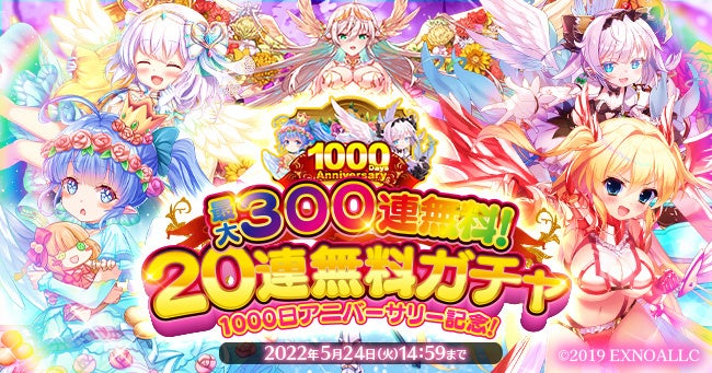 1000日アニバーサリー開催を記念して、「1000日アニバーサリー20連無料ガチャ」を開催しております。本ガチャは期間中、最大300連無料で引くことができます。