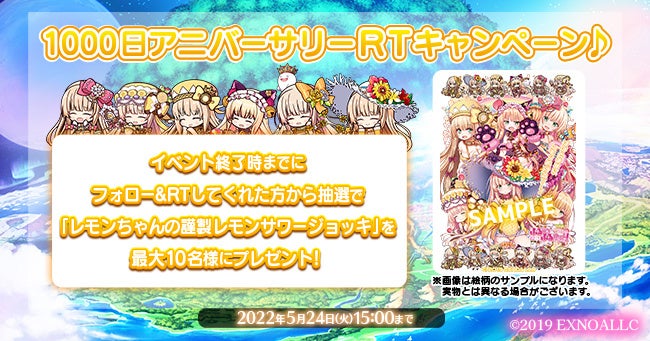 1000日アニバーサリーを記念して、公式TwitterにてRTキャンペーンを開催中!