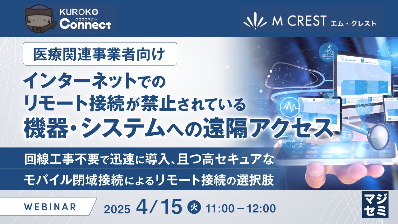 マジセミ株式会社は「【医療関連事業者向け】インターネットでのリモート接続が禁止されている機器・システムへの遠隔アクセス」というテーマのウェビナーを開催します。