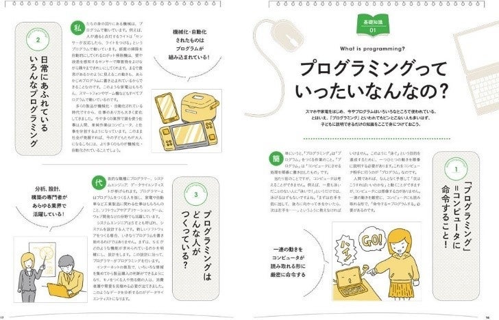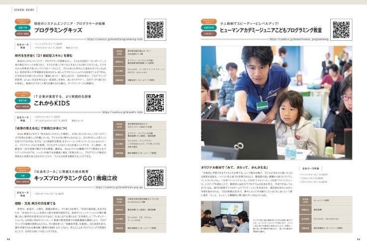 ムック本には、日本最大級となる、全国の80ブランド・約6,300分の小学生向けプログラミング教室の最新情報のほか、保護者が知るべきプログラミングについての知識を掲載。プログラミングで世界から注目されるキッズプログラマーにも取材しており、1冊で”プログラミング教育の今”がわかる必見の内容となっています。