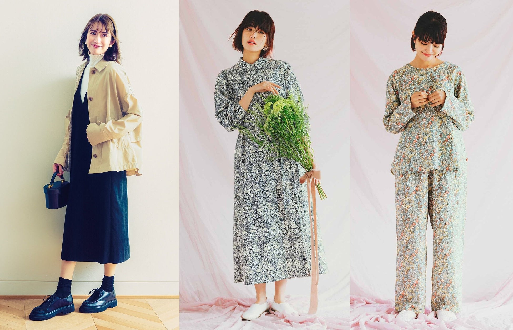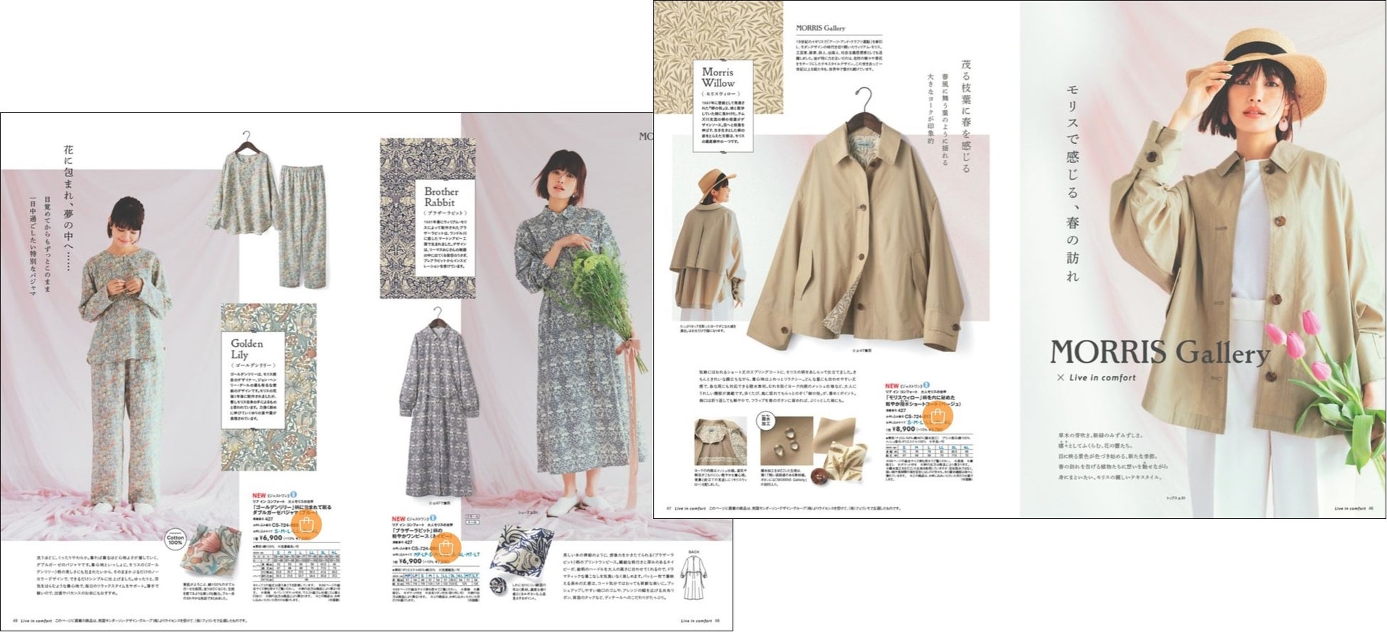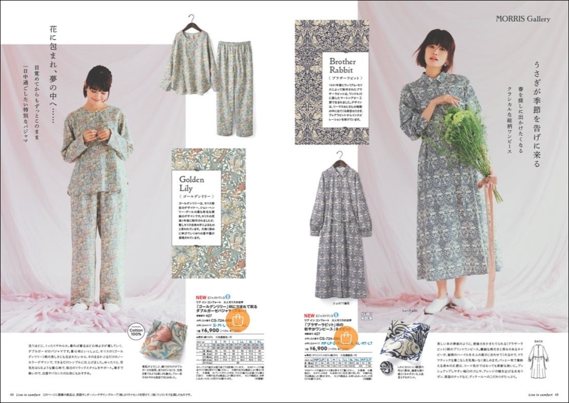 「大人モリスの世界」を美しく表現した春の新作「軽やか撥水(はっすい)ショートコート 」や「軽やかワンピース」、「ダブルガーゼパジャマ」がLive in comfortから新登場