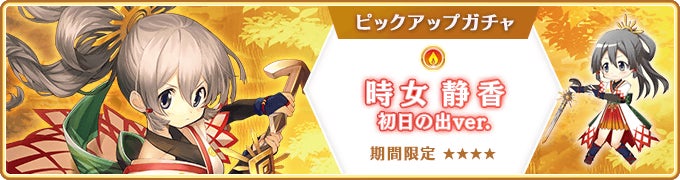 また、本イベントの開催に合わせて『期間限定 時女静香 初日の出ver.ピックアップガチャ』開始いたしました。