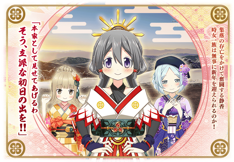 本イベントでは、年越しのために集落に戻った「時女静香」が時女一族の新年の儀式をめぐる秘められた歴史の真実を知り、一族の新たな門出を迎えるために奮闘するストーリーとともに進行するストーリークエストをプレイできます。