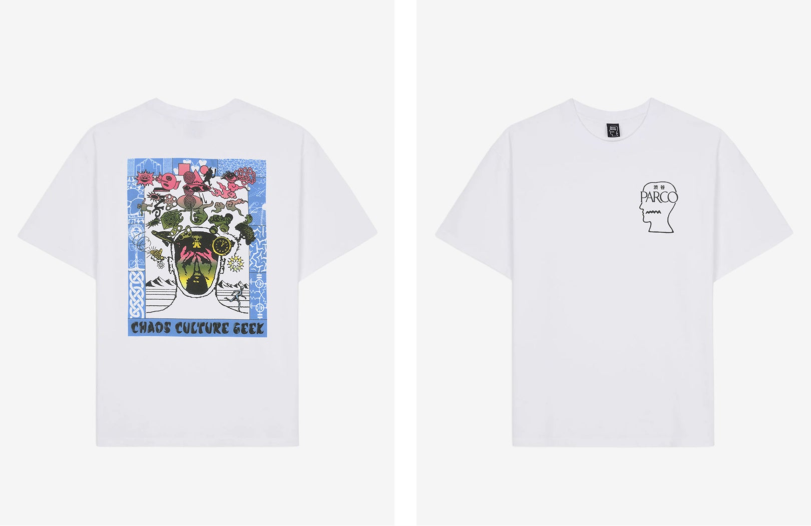 「CHAOS CULTURE GEEK」のキービジュアルを手掛けたBRAIN DEADディレクター、カイル・ウンが7月18日(金)に来日し、「オニギリ配布」と「カイル インストアDJ」イベントを開催。100枚限定で販売されるキービジュアルを使用したTシャツは、フロントのSHIBUYA PARCO×BRAIN DEADロゴも必見。イベント限定の異なるデザインのTシャツも150枚限定で販売予定。