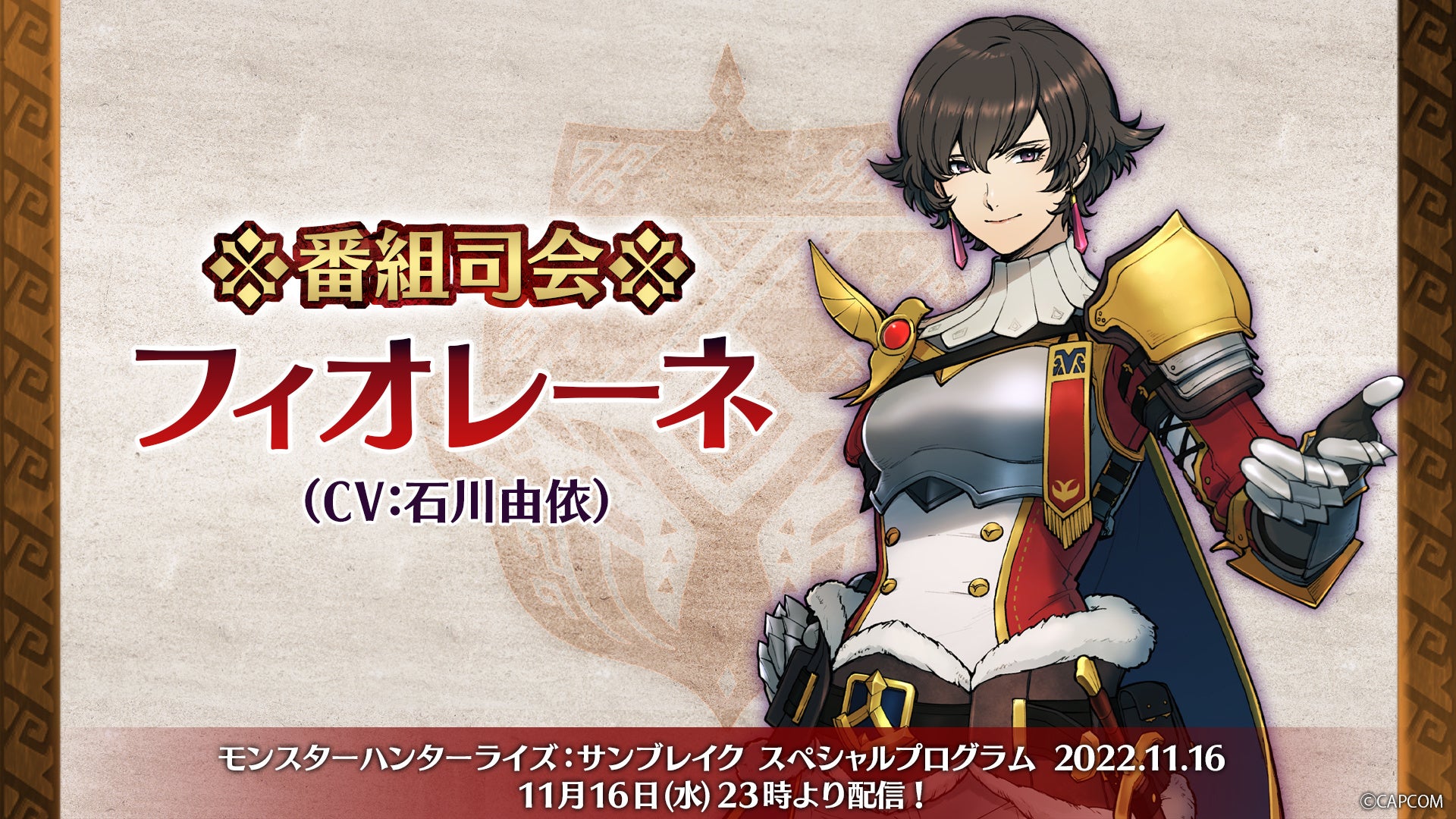 フィオレーネが番組司会!? 「モンスターハンターライズ:サンブレイク スペシャルプログラム 2022.11.16」が、2022年11月16日(水)23時より配信決定!