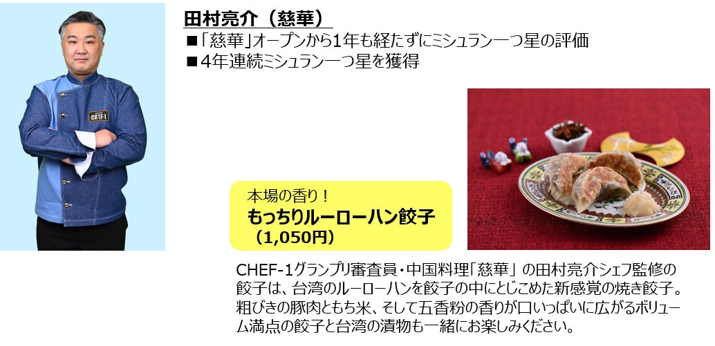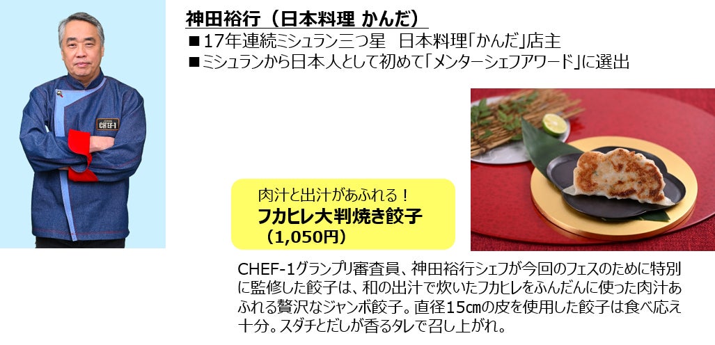 全員がミシュラン星付きレストランのシェフで、日本を代表する料理人たちが監修したオリジナル餃子が食べられるまたとないチャンスです。