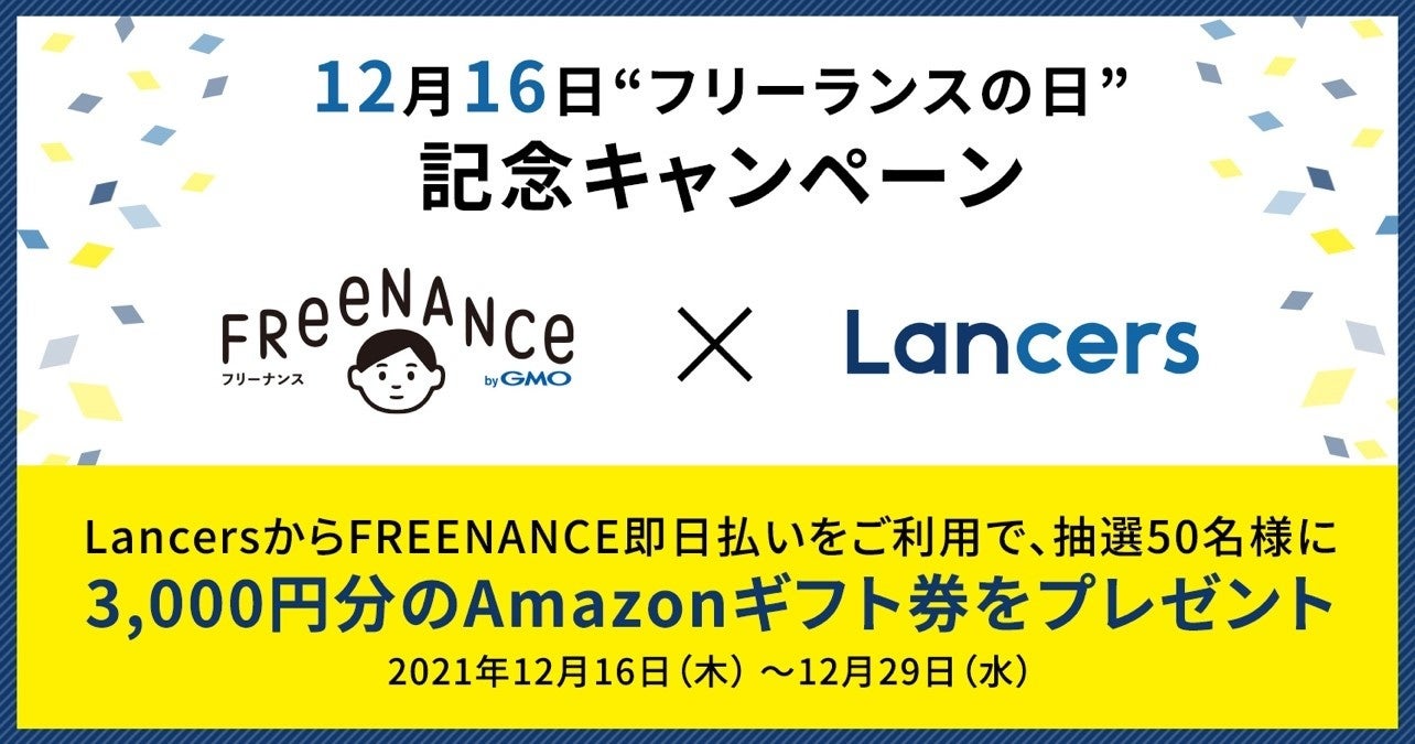 ~「Lancers」経由の『FREENANCE 即日払い』利用者を対象に、抽選で50名に3,000円分のAmazonギフト券をプレゼント~