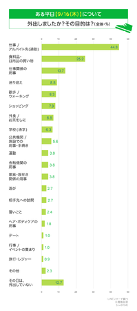 9月16日(木)に、外出をしたかどうか、また外出した方にはその目的を聞きました。