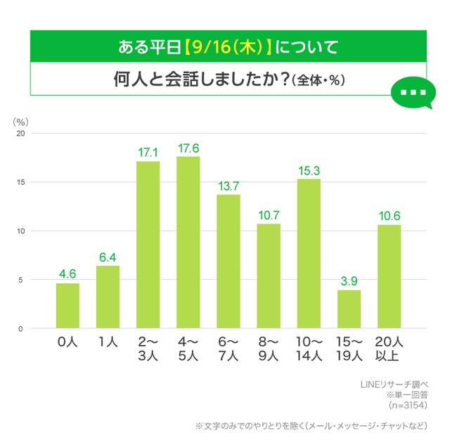 9月16日(木)に、プライベートやビジネスを問わずに、何人と会話をしたか聞きました。