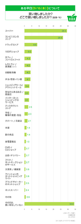 9月16日(木)に、実際のお店だけでなく、ネットショッピングやデリバリーの注文などすべて含め、自分で支払いをして買い物をしたか、また買い物をした方にはその場所を聞きました。