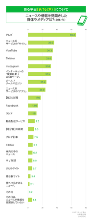 9月16日(木)に、ニュースや情報を見聞きした媒体やメディアについて聞きました。