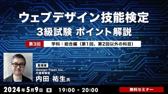 【Webクリエイター向け】“Webの国家資格”を取得してキャリアアップに生かそう!5/9(木)無料セミナー「ウェブデザイン技能検定3級試験 ポイント解説 第3回」