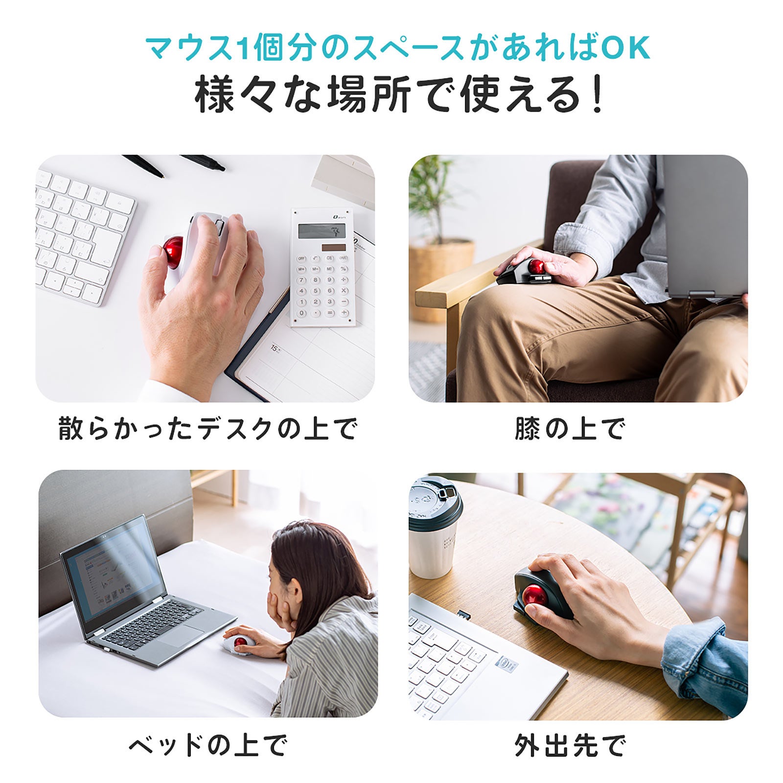 本製品は、デスク上に省スペースに置けて、手の小さな人にも使いやすい、小型サイズのトラックボールです。