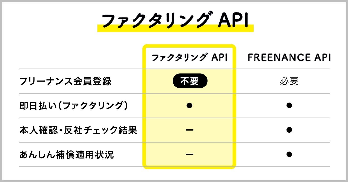 本日2021年12月21日(火)より、「FREENANCE byGMO」の会員でなくても報酬を最短即日中に現金化可能なファクタリングサービスを利用できる『ファクタリング API』の提供を開始しました。