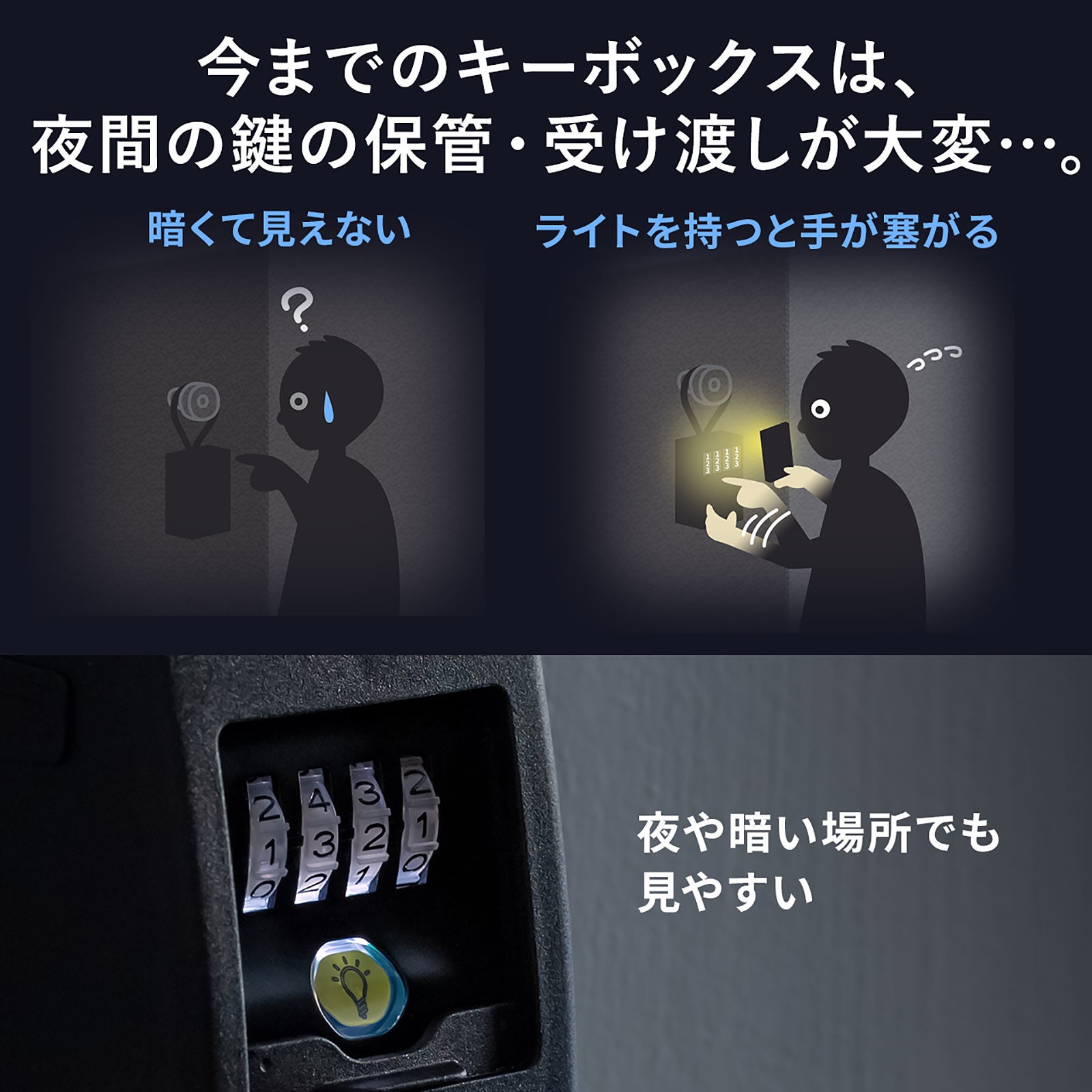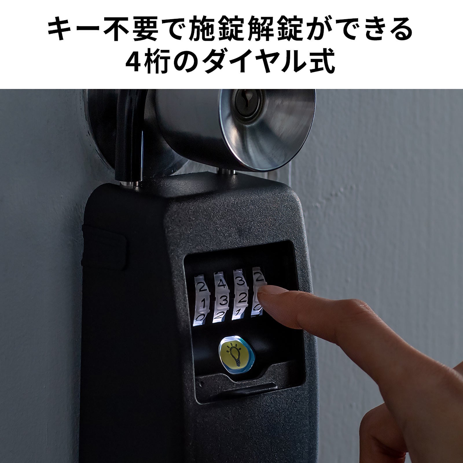 セキュリティキーボックス 鍵付き収納ボックス 4桁ダイヤル式 LEDライト付き 夜間対応