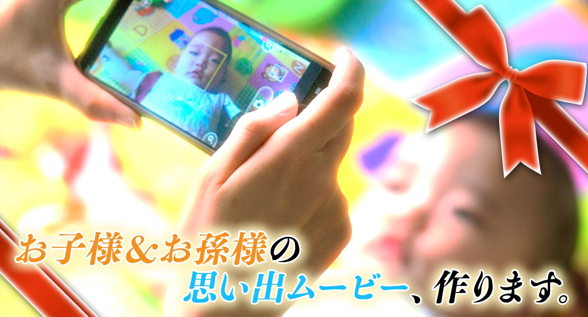 携帯電話・スマートフォンに撮りだめているお子様やお孫様の写真や動画を思い出ムービーに。