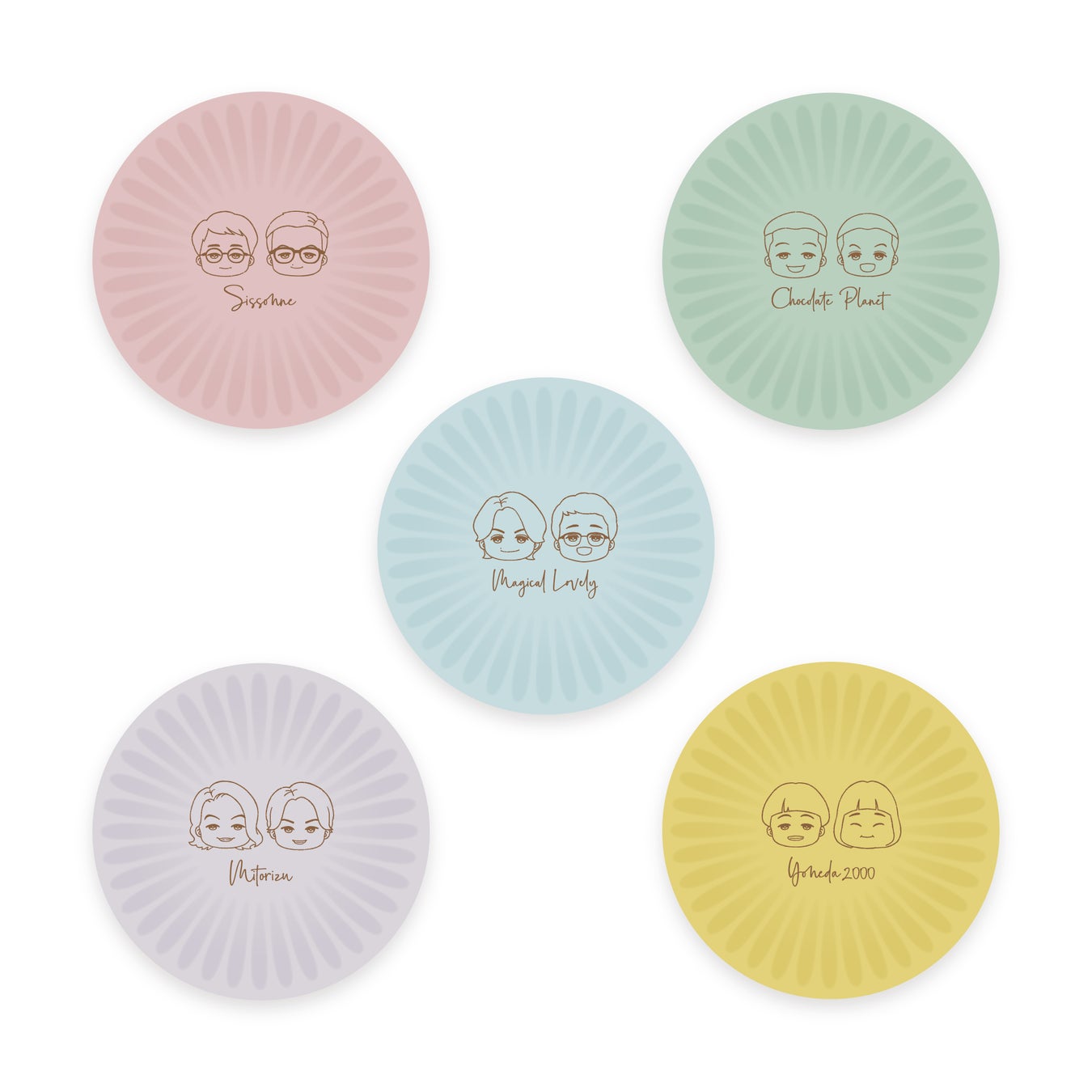 デザインは豆皿・マグカップ共に、シソンヌ、チョコレートプラネット、マヂカルラブリー、見取り図、ヨネダ2000の5組。