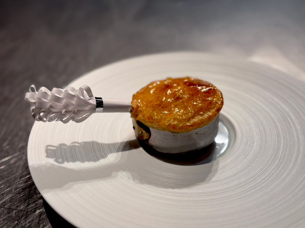 赤酢の香りとともに旨みを引き立てた『鹿児島黒牛炙り寿司』とまろやかな脂をトロたくで包み込んだ『佐賀牛巻き寿司』、尾崎牛の旨みをぎゅっと閉じ込めて香ばしく揚げた贅沢な『尾崎牛のミニコロッケ』、短角牛をじっくり煮込み、旨みを閉じ込めた贅沢なシチューをサクサクのパイ生地で丁寧に包んだ、豊かな香りと濃厚な旨みが広がる『黒毛和牛のシチュー パイ包み焼き』など、この日限りのコースをご用意いたしました。