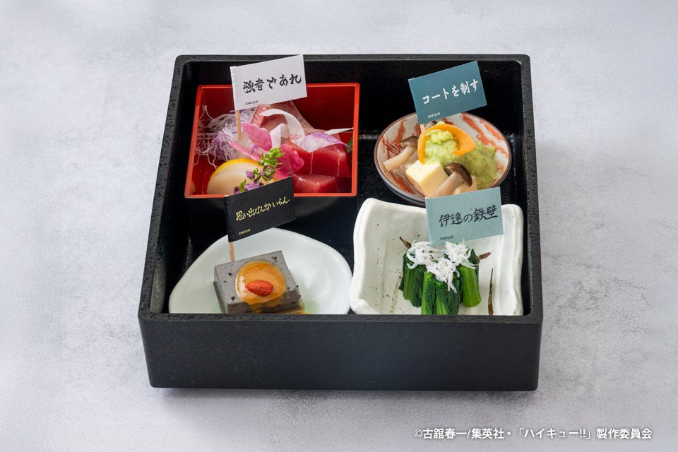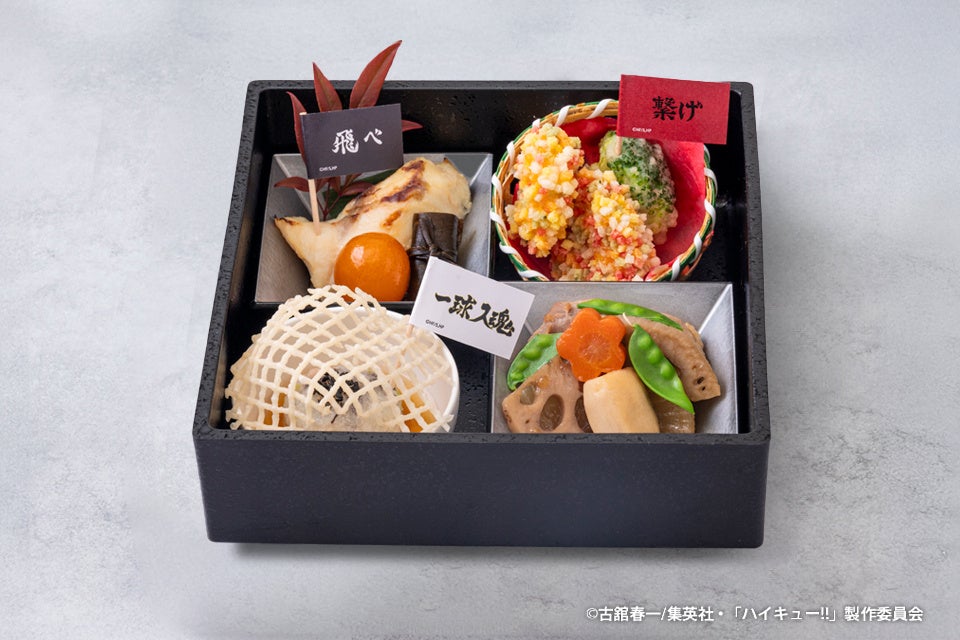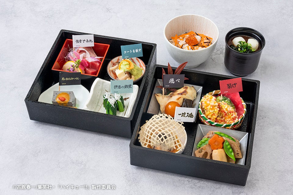 ホテル最上階から渋谷の街を見下ろせる日本料理「旬彩」にて、アニメ「ハイキュー!!」や各キャラクターをイメージしたコラボ和食弁当を販売します。