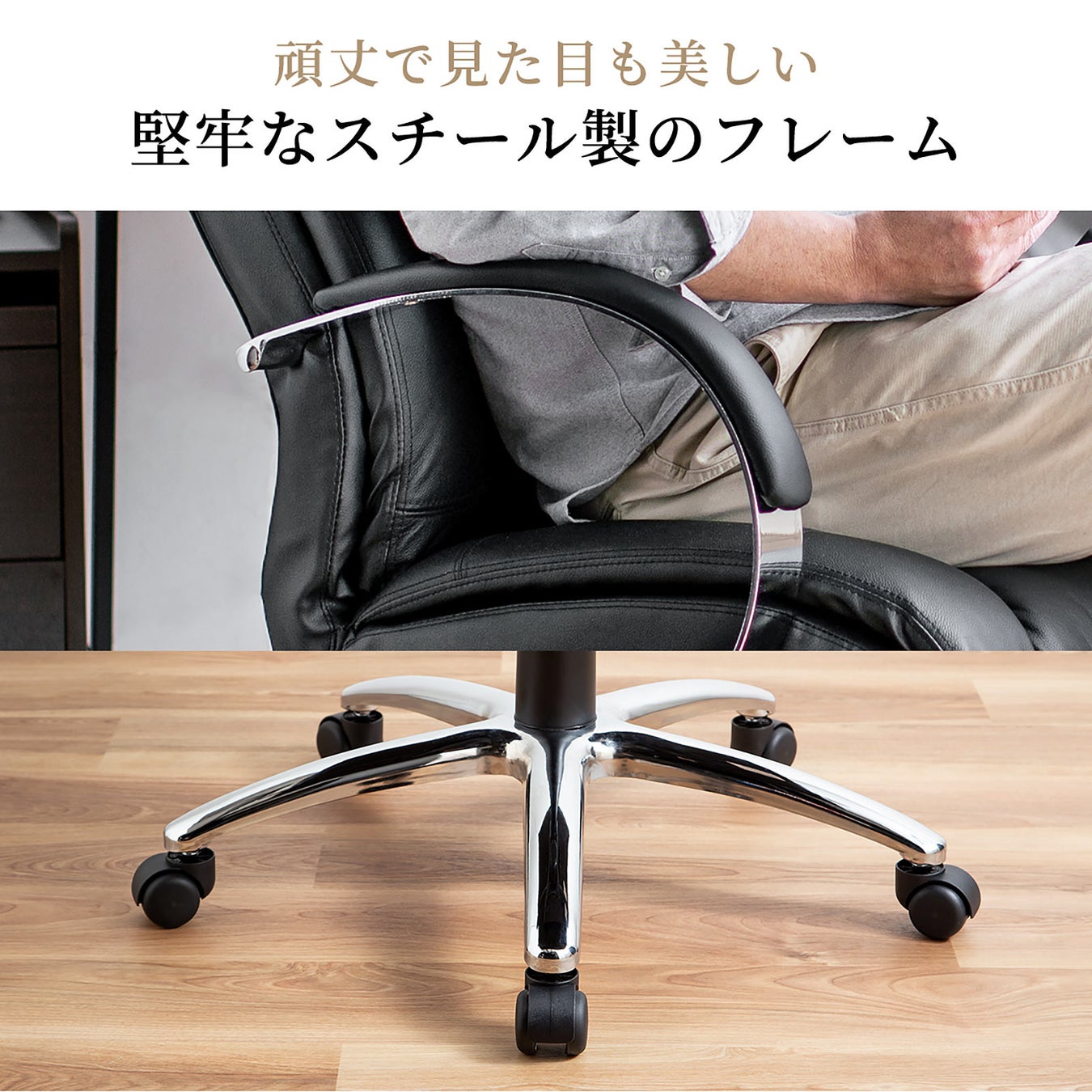 レザーチェア 社長椅子 本革 牛革 スチールフレーム フロントロッキング