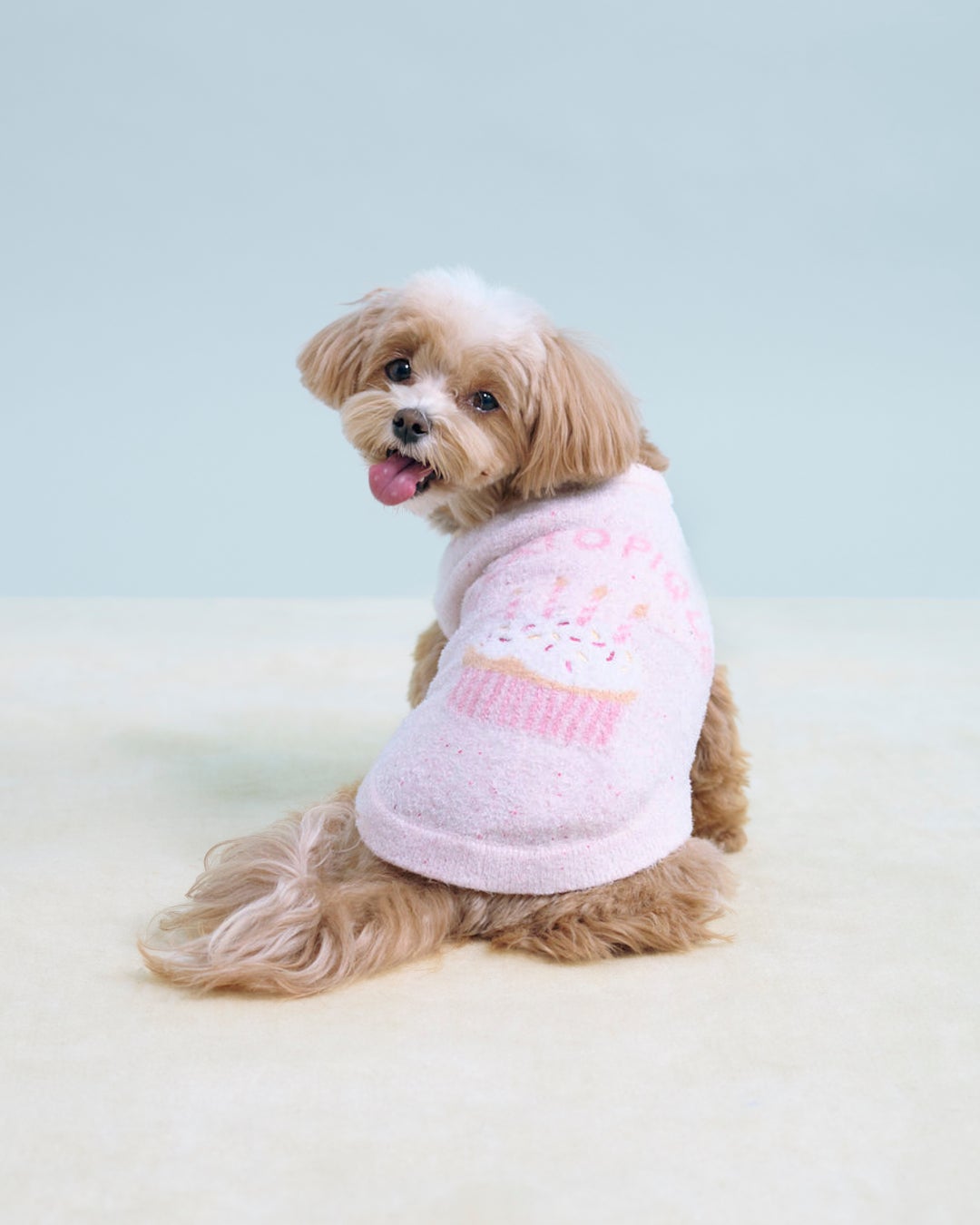カップケーキに飾られたロウソクとカラースプレーがお祝いムードたっぷりのジャガードニットプルオーバー。