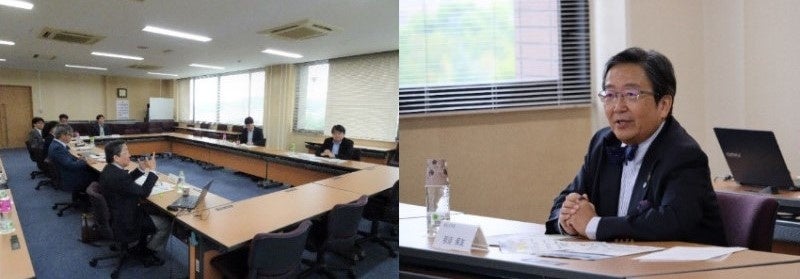 意見交換では、那須学長が、J-PEAKS事業を学内に浸透させるため、各部局の教職員を対象に、積極的に講話と対話を行っている状況を説明。J-PEAKSを通じた改革、技術職員の組織化と高度化、URAの育成、18歳人口の減少を見据えて地域の高等教育へのアクセス確保とそれを推進するプラットフォームの在り方など、幅広いテーマについて議論を交わしました。