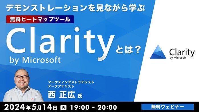 無料ヒートマップツール「Microsoft Clarity」とは?デモを見ながら概要や活用法などを学ぶ!5/14(火)無料セミナー「無料ヒートマップツール『Microsoft Clarity』とは?」