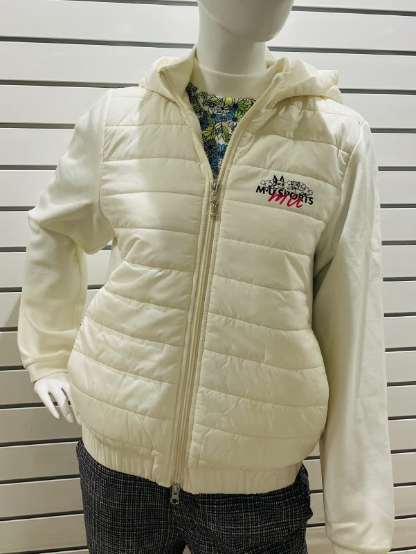 フード付きで身頃部分は中綿キルト仕様。とても軽いのに温かく吸湿発熱性のある素材を使用しております。ストレッチ性にも富んでいて襟はスタンド仕様なのでファッション性もある一枚です。