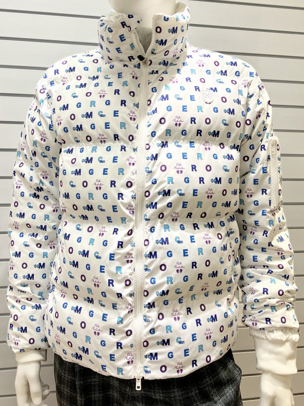 2シンプルなデザインにカラフルでポップなロゴ使い。カラフルでグリーンで映える一枚です。プレーの合間の寒さ対策にお役立てください。
