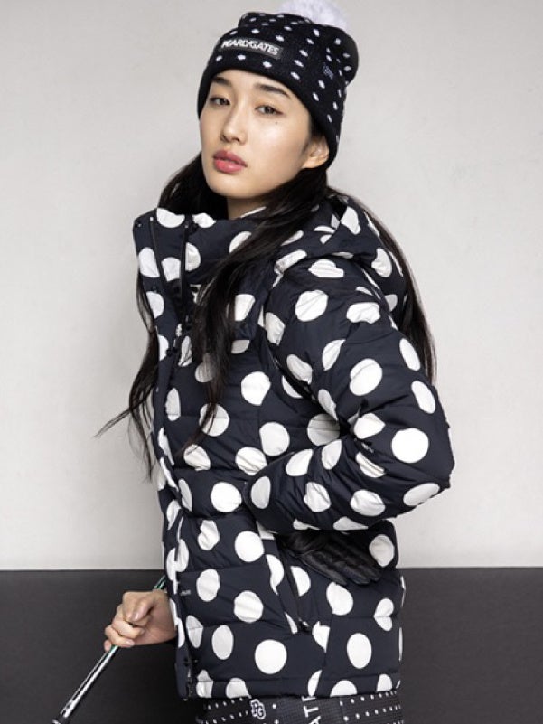 毎年人気の軽量でストレッチの効いたプレイダウンシリーズです!今年は定番の無地のデザインに加え、ドット柄が新発売。濃紺に白いドットで、可愛らしさもあり落ち着いた印象になっています。袖が取り外し可能でダウンベストとしても使える着回しのきく一枚です。