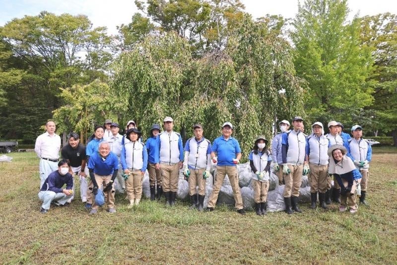 作業開始にあたり、那須学長が「今日も皆さんと一緒に作業ができることを楽しみにしていました」と笑顔であいさつ。自走式草刈機を操りながら、伸びた草を丁寧に刈り取りました。刈り取られた草は、三村理事、小代理事・事務総長がグッドジョブセンターの職員と一緒に熊手を使って集め、和やかな雰囲気の中、ともに汗を流しました。