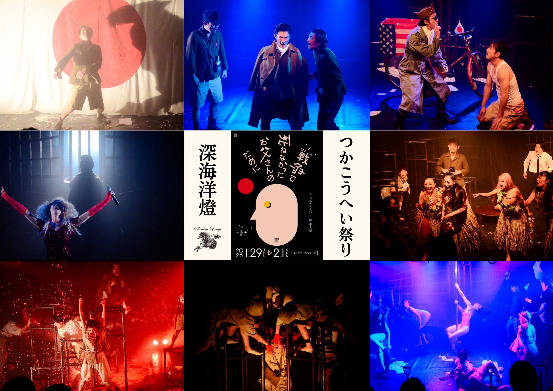 深海洋燈(しんかいらんぷ)が、代表・申大樹の恩師であるつかこうへい氏の不朽の名作、 『熱海殺人事件~売春捜査官~』と、後に『広島に原爆を落とす日』に発展する初期の作品であり、つかこうへい氏の作家としての核ともなっている『戦争で死ねなかったお父さんのために』の2作品を上演する。