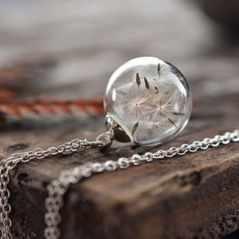 - 本物のたんぽぽの綿毛を閉じ込めたアクセサリー